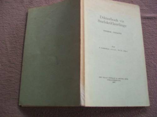 Afrikaanse Snelskrif (Pitmanstelsel) Dikteeboek vir Snelskrifleerlinge Tweede Hersiene Uitgawe. 'n Reeks eksamenvraestelle met snelhede van 50 tot 140 woorde per minuut met inbegrip van die vernaamste snelskriftrekke deur A Geldenhuys (voorheen Senior Lektor aan die Tegniese Kollege, Kaapstad). Sagteband 139 bladsye goeie toestand, naaminskripsie op 1ste blad, boek wys baie min gebruik aan buitekant.