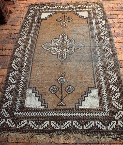 On auction is this lovely hand-knotted tribal rug - possibly a Balouch. It is a vintage carpet which shows minor wear, but it is sure to still give the new owner decades of pleasure. In good condition considering the age. A beautiful piece.