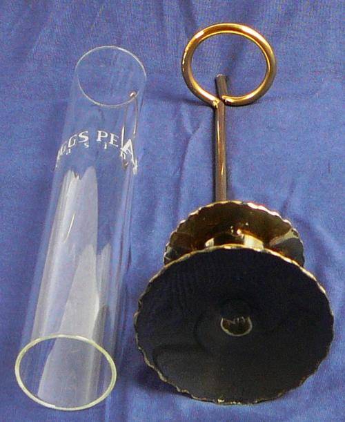 This Candle Holder - A Souvenir of Piggs Peak Casino- is in unused condition, it is still in it's original plastic wrapping. The glass is engraved Piggs Peak Casino, it is 300 mm high has a base diameter of 80 mm, the glass tube diameter is 40 mm and it weighs 395 grams.