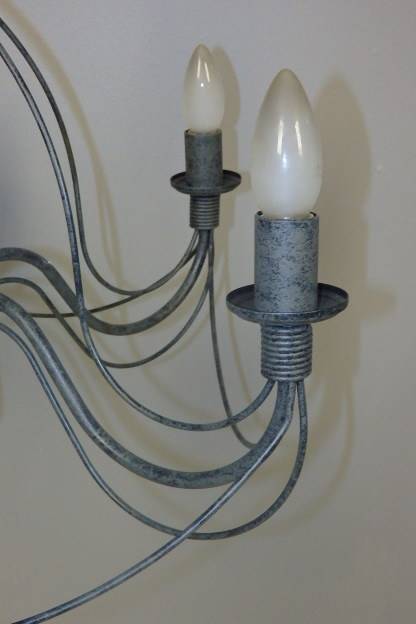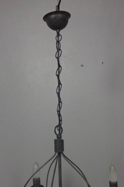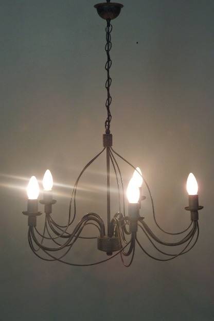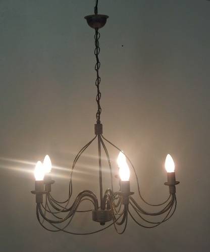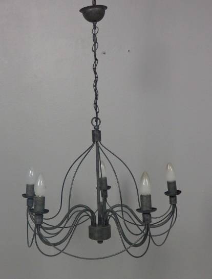 THIS GORGEOUS 5-ARM WROUGHT IRON CEILING CHANDELIER WITH CANDLE LIGHT FITTINGS IS IN GREAT CONDITION AND MEASURES A VERY DECENT 575mm WIDE x 450mm HIGH (850mm INCLUDING THE CHAIN). THIS IS THE PERFECT ENTRANCE HALL CHANDELIER OR ON A LONGER CHAIN IN A DOUBLE VOLUME FOYER OR EVEN ABOVE A DINING TABLE OR ON A PATIO ETC. THERE IS MINIMAL AGE AND USAGE RELATED WEAR AND TEAR. THIS IS A GORGEOUS CHANDELIER. PLEASE NOTE THE GLOBES ARE NOT INCLUDED.