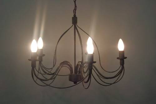 A GORGEOUS 5-ARM WROUGHT IRON CEILING CHANDELIER WITH CANDLE LIGHT FITTINGS IN GREAT CONDITION