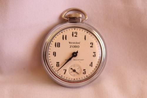 This gorgeous antique Canadian made Westclox Zobo chrome plated open-face pocket watch is in lovely vintage condition and measures 50mm across the watch. The watch is in working condition and has normal vintage related wear and tear and scuffs and some tarnish as seen in the pics. The pocket watch would make an awesome gift or make a stunning addition to a vintage or antique watch collection. Please view the pics carefully to fully appreciate this lovely antique Westclox Zobo chromed pocket watch and to confirm the condition. Please view the shipping options or request courier costs prior to purchasing any of our products.