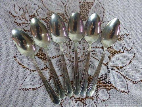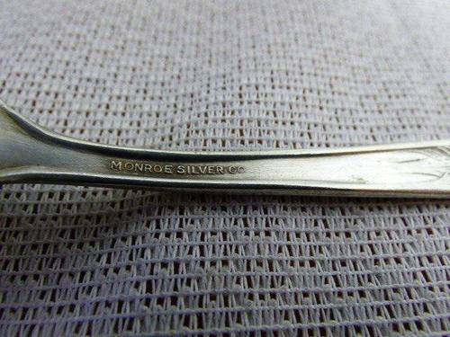 THIS GORGEOUS COLLECTION OF SIX MONROE SILVER CO, SILVER PLATED BRANDON FLATWARE TEA SPOONS ARE IDEAL TO ADD TO A COLLECTION. THE SPOONS ARE IN GOOD CONDITION WITH MINOR AGE AND USAGE RELATED WEAR AND TEAR AND TARNISHING. MONROE SILVER CO IS AN AMERICAN SILVER COMPANY.