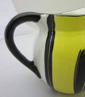 A lovely Cape Town - made ceramic Lesedi pottery art ware jug, with gold gilt measures 7 cm across and 14 cm high. The jug would look fabulous on display in the kitchen and the bright yellow as well as the stunning design would brighten any room. Please view the pictures carefully to fully appreciate this colourful and decorative ceramic jug and to confirm the condition. Please view the shipping options or request courier costs prior to purchasing any of our products.