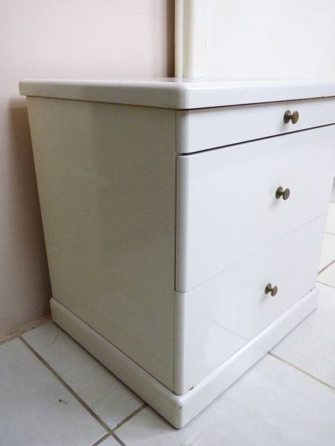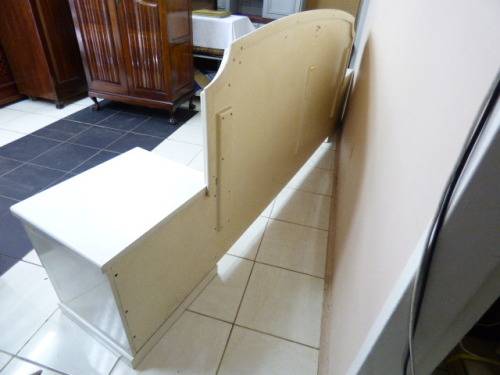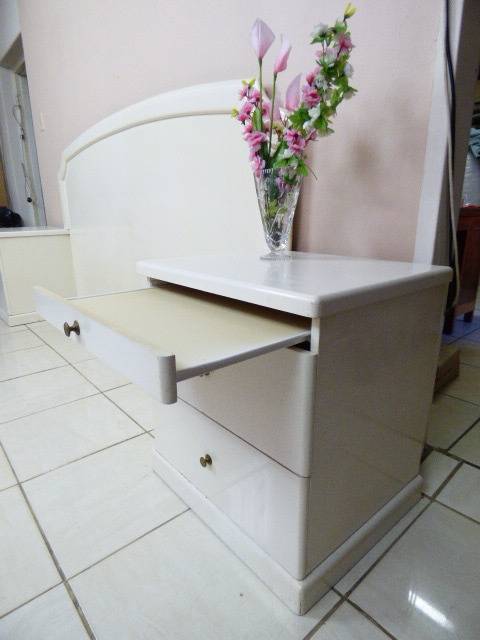 THIS GORGEOUS GENUINE 'FLORENTINE" KING SIZE HEADBOARD WITH TWO SIDE PEDESTALS MEASURES 314cm LONG, 49cm WIDE AND 124cm HIGH. THE SPACE BETWEEN THE PEDESTALS FOR YOUR MATTRESS MEASURES 196cm. IT HAS A PULL OUT TOP AND TWO DRAWERS ON EACH PEDESTAL. THIS IS A BEAUTIFUL, CLASSY AND STYLISH PIECE OF FURNITURE!!! THERE IS SOME AGE RELATED WEAR ON THIS HEADBOARD, IT IS A STUNNING PIECE OF FURNITURE.