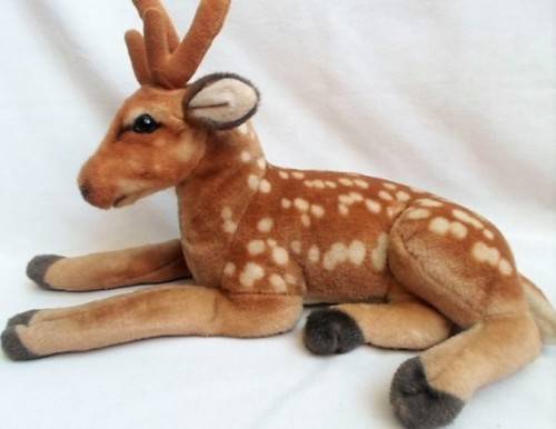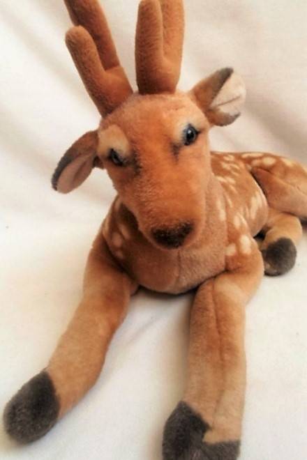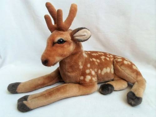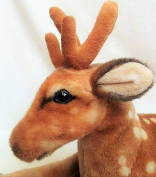 52CM LONG AND 30CM TALL IN LYING DOWN POSITION AND IN VERY GOOD CONDITION WITH ORIGINAL LABEL AND WITH SUCH BEAUTIFUL EYES. HE DOES HAVE A MECHANISM BUT THIS IS NOT WORKING ANYMORE BUT WHAT A BEAUTY! REFER IMAGES