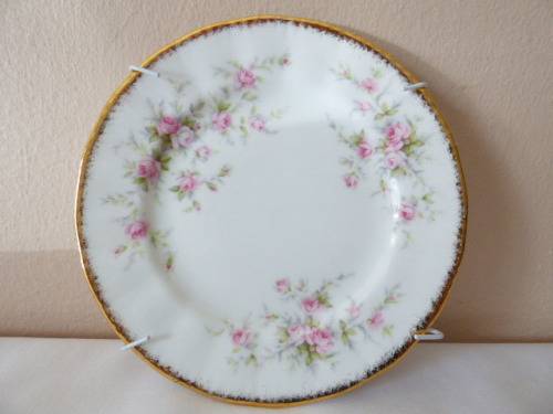 THIS EXCEPTIONALLY BEAUTIFUL WALL PLATE IS PART OF THE VINTAGE ROYAL ALBERT RANGE. PATTERNED WITH *VICTORIANA ROSE* AND ACCENTUATED WITH A DELICATE GOLD BORDER. CLASSY & SOPHISTICATED ON YOUR WALL DISPLAY. THIS GORGEOUS PLATE MEASURES 16cm ACROSS.