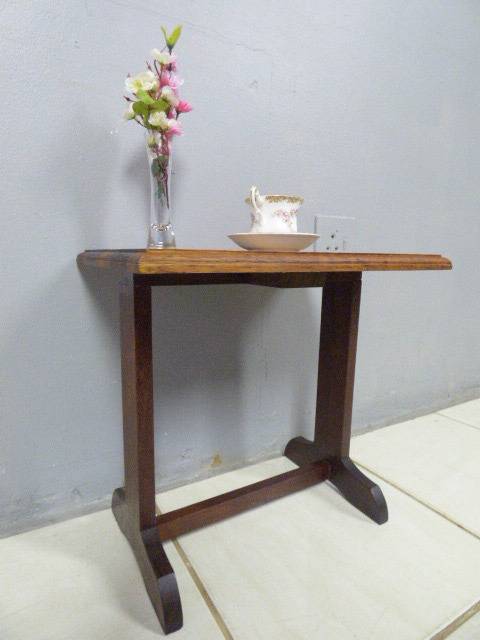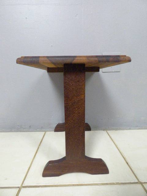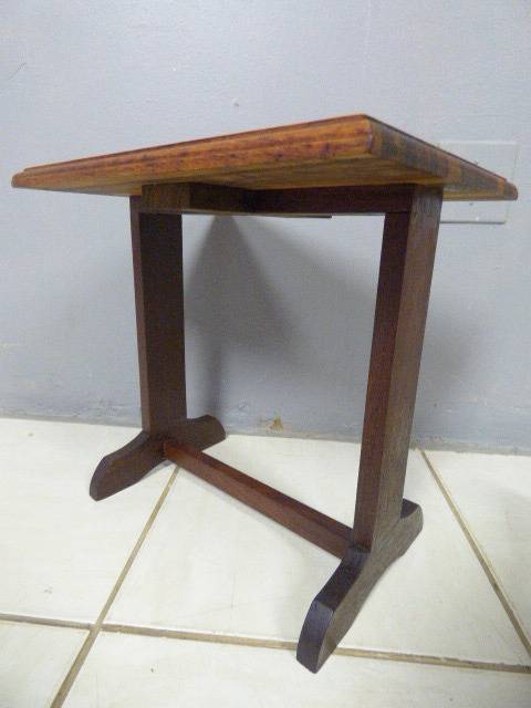 This gorgeous solid Stink wood occasional, display or side table will add some charm to a room or patio. The flowing colour in the wood grain is stunning. It will look lovely with a colourful plant on it, or next to an informal chair for drinks or coffee. It measures 33cm x 44cm x 43cm high. There is minimal age/usage related wear. Please view the pics carefully to appreciate this lovely side table and to confirm the condition. .