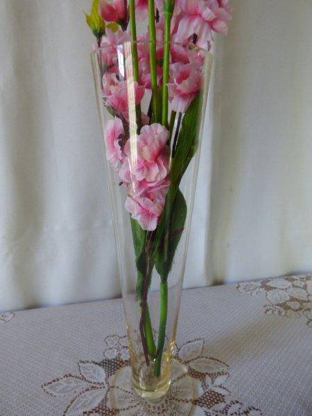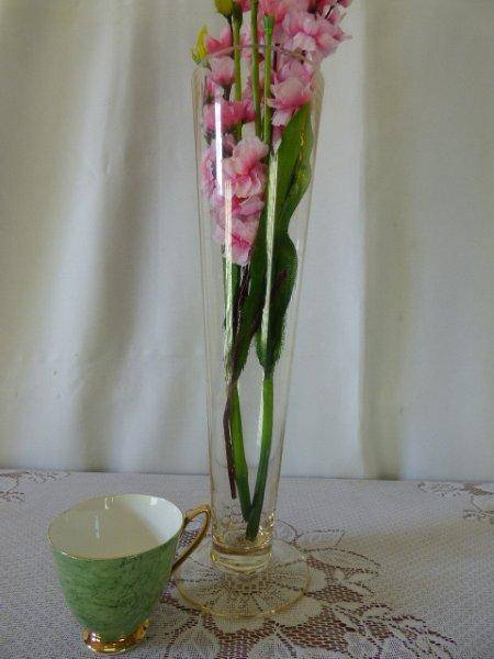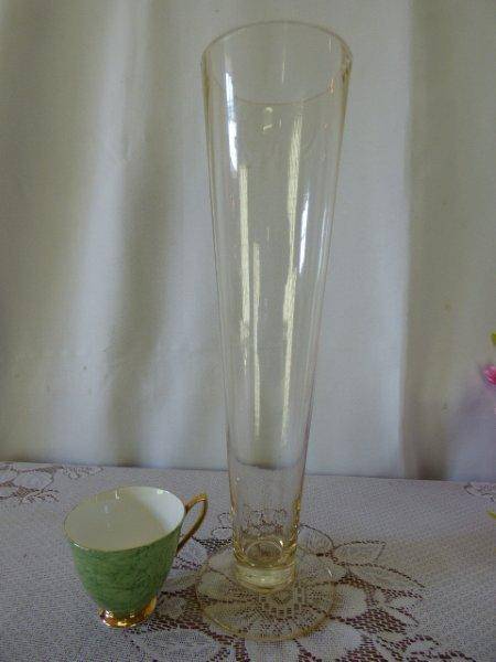 THIS BEAUTIFUL, ELEGANT TALL VASE HAS AN AMAZING TINT IN THE COLOUR AT THE BASE, ITS STYLISH WITH ELEGANCE. IT STANDS 39cm HIGH. GORGEOUS.