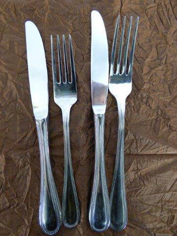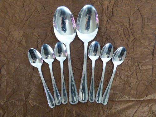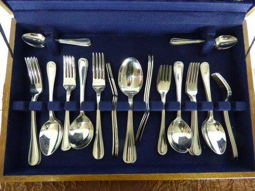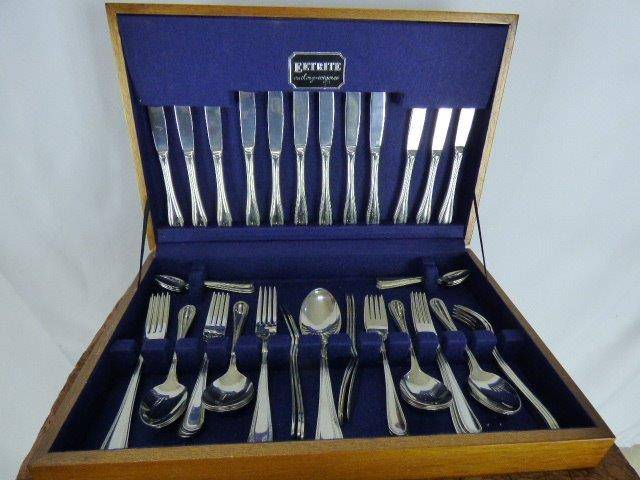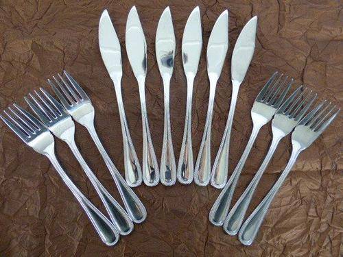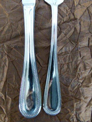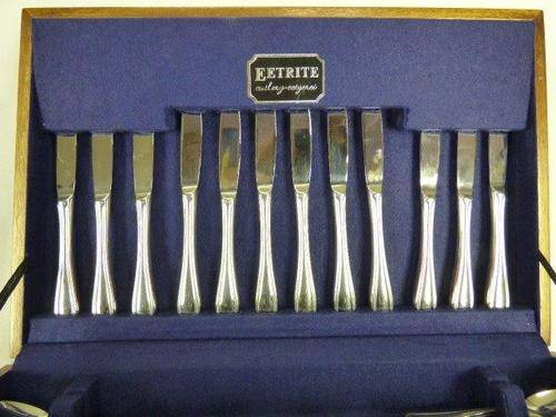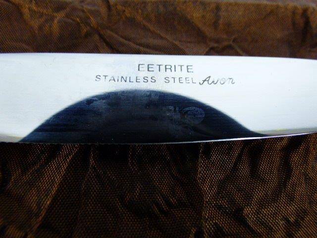 THIS ABSOLUTELY FABULOUS VINTAGE(1990's) EETRITE STAINLESS STEEL AVON BEAD PATTERN CUTLERY SET CONSISTS OF 6 FISH KNIVES, 6 FISH FORKS,6 LARGE FORKS, 6 SMALL FORKS, 6 LARGE KNIVES, 6 SMALL KNIVES, 6 DESSERT SPOONS, 6 SOUP SPOONS,6 TEASPOONS,2 SERVING SPOONS. THIS SET IS PURE ELEGANCE AND STYLE AND WILL LOOK FABULOUS ON YOUR DINING TABLE. THIS SET IS IN PRISTINE CONDITION AND HARDLY USED.