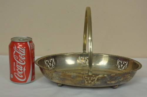 THIS GORGEOUS VINTAGE SILVER PLATED "FOOTED" OVAL BON BON DISH WITH ELEGANT DETAILING IS IDEAL AS A FRUIT BOWL OR PASTRY PLATE/ DISH ETC. THE DISH IS 28cm LONG x 21cm WIDE x 5.5cm HIGH (EXCLUDING THE HANDLE) AND HAS MINOR AGE AND USAGE RELATED WEAR AND TEAR AND SCUFFS. THE DISH WOULD LOOK FABULOUS WITH A GOOD POLISH.