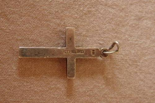 THIS GORGEOUS VINTAGE STERLING SILVER (925) CROSS PENDANT WITH INTRICATE DETAILING IS IN GREAT CONDITION AND IS STAMPED ON THE BACK AS STERLING AND "925". THE CROSS IS 2cm x 1.2cm. IT IS IDEAL TO WEAR ON A FINE CHAIN OR EVEN ON A "CHUNKY" CHARM BRACELET.