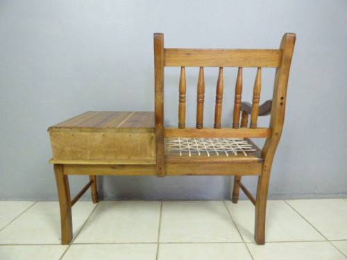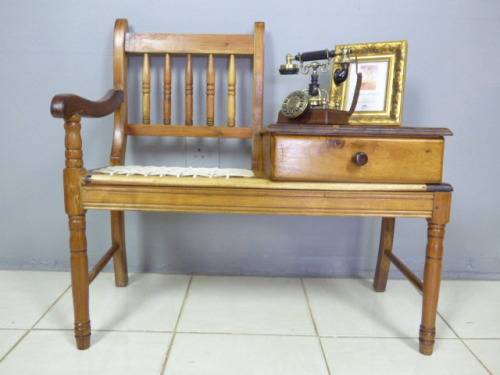 WE ARE OFFERING A GORGEOUS VINTAGE TELEPHONE TABLE, THE DIFFERENT TONES IN THE WOOD AND THE RIEMPIES ON THIS ONE REALLY ADDS CHARACTER TO THIS PIECE. IT COMES WITH A STORAGE DRAWER, IT IS IN FANTASTIC CONDITION FOR THE AGE!!! EVEN THOUGH FEW PEOPLE USE TELEPHONE TABLES ANYMORE THEY ARE AWESOME FOR DISPLAYING ANTIQUE / VINTAGE TELEPHONES AND OTHER ITEMS!!! THIS GORGEOUS TELEPHONE TABLE MEASURES APPROXIMATELY 50cm x 96cm x 90cm HIGH.