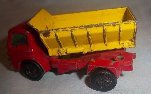 A GRIT SPREADER TRUCK BY MATCHBOX, SUPERFAST NO. 70. PLAYED WITH BUT OVER ALL GOOD CONDITION. THE TIPPER PIECE IS LOOSE, SOME NICKS HERE AND THERE.