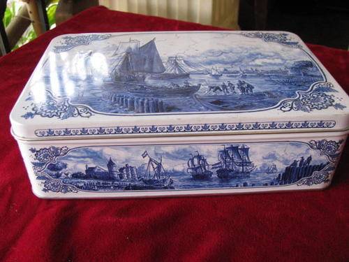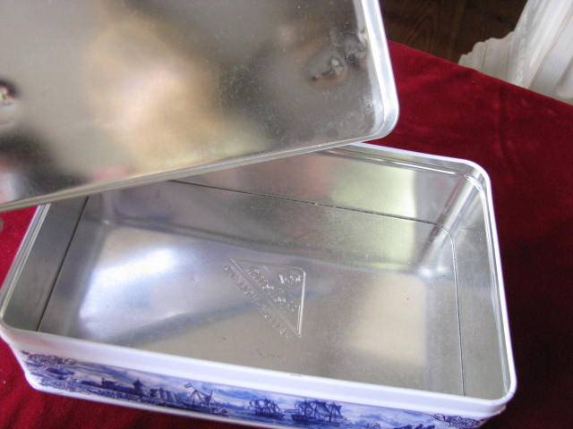 A HELLEMA, HALLUM- HOLLAND BLUE AND WHITE DELFT TYPE TIN