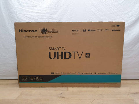 A new in the box Hisense 55 inch B7100 4K Smart TV. The pictures are to show what the TV looks like, it is sealed in the box as shown in the pics.