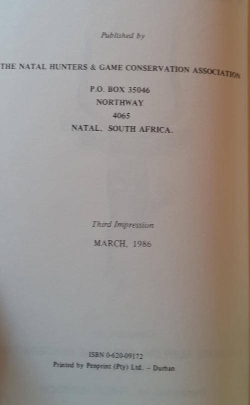 Published by Natal Hunters and Game Conservation Association, Natal