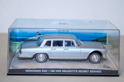 This fantastic and very collectable James Bond 007 "Mercedes 600" die cast model car from the movie "On her Majesty's secret service" is still in its original display box. The 007 collection include all the cars that were used in the James Bond movies over the years. They are very collectable and fast becoming scarce. The box measures 15cm long x 9cm wide x 6.5cm high. The box has minor scuffs. Please view the pics carefully to fully appreciate this awesome collectable die cast model car and to confirm the condition.