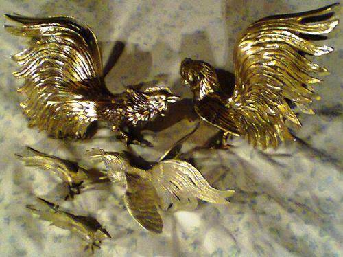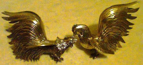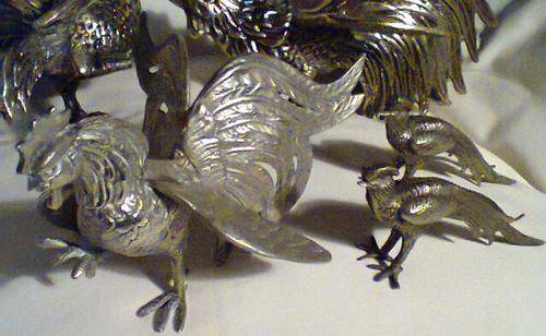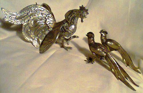 A JOB Lot of 5 Birds. 2 Heavy & Large Brass Fighting Cock's 1 x EPNS F/Cock + 2 x Peacocks .