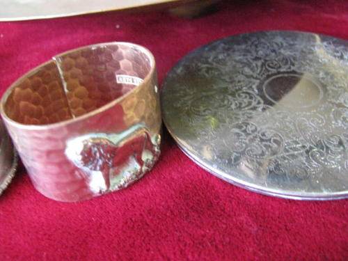 A JOBLOT OF 13 ITEMS... REALLY LOVELY BUTTER DISH WITH GLASS INSERT AND LID, A KRUGER PARK SERVIETTE RING, 2 SALT CELLARETS WITH PAW FEET, ETC ETC.......