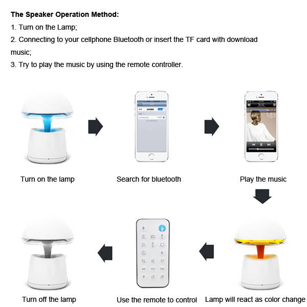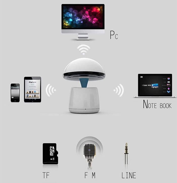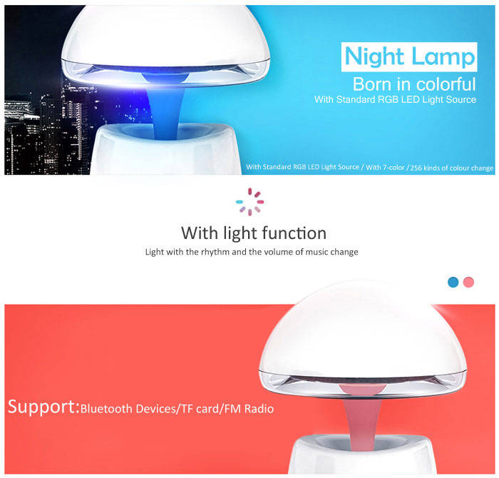 A LA Mushroom Magic Lamp Night Light Intelligent Alarm Clock Bluetooth Speaker For iPhone Smartphone<