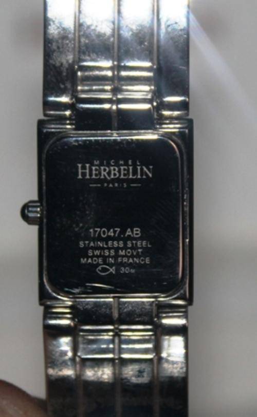-A Ladies Michel Herbelin watch no 17047.AB Made in Paris in origanal box - working (New Battery inserted at the jewelers on 15/02/04) swiss Movement , 30m water resistant , strap is also a Herbelin Strap CONDITION: SOLD as FOUND - -Please see ALL IMAGES below |
