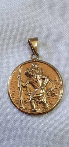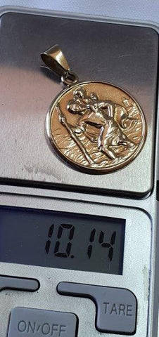 This large 9ct gold St Christopher pendant weighs 10.14grams and is 3cm across. If you are looking for an exclusive piece of jewellery for a special someone, then this amazing gold pendant would be perfect. Please view the pictures carefully to fully appreciate this large 9ct gold St Christopher pendant to confirm the condition.