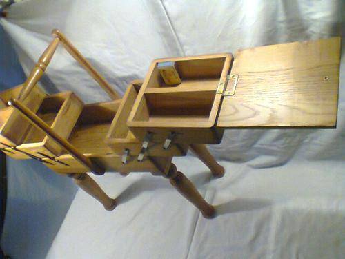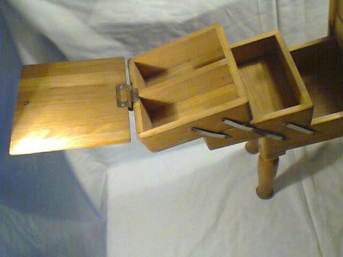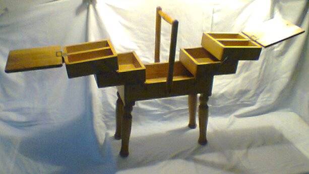 A Very BEAUTIFUL HEAVY Sewing Cabinet On 4 Legs with Felt under feet. Sizes 590mm Tall x 1155mm Extended In Length or 420mm Collapsed x 220mm Wide. This is a must for the collector and will look amazing in your house and are getting scarce.This Amazing cabinet is over 60 years and is hand made with unusual long legs.