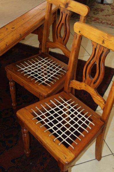 THIS REALLY STUNNING MAGNIFICENT SOLID OREGON 8 SEATER DININGROOM SUITE WITH 2 GORGEOUS SOLID OREGON RIEMPIE CARVERS AND 4 SOLID OREGON RIEMPIE CHAIRS IS IN EXCELLENT CONDITION FOR THE AGE AND VERY WELL LOOKED AFTER!!! THE TABLE IS SOLID OREGON, IT'S HUGE AND CAN VERY COMFORTABLY HANDLE 8 CHAIRS AND EVEN 10 CHAIRS WITH A BIT OF A SQUEEZE... EVERYTHING IS STABLE & FIRM ON THE GROUND! IT IS REALLY ONE OF THE BEST OREGON DINING ROOM SUITES WE HAVE LISTED ON BOB!!!.