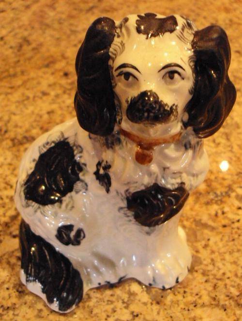 A LONELY STAFFORDSHIRE SPANIEL BEGGING FOR A GOOD HOME HE IS ONLY SMALL (15cm) AND DOESN'T EAT MUCH BUT HE IS VERY OLD SO QUITE HAPPY TO SIT ON YOUR SHELF ALL DAY. HIS CONDITION IS VERY GOOD AND HAS A COLD NOSE.