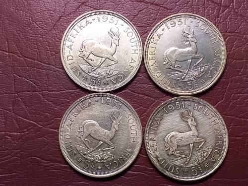 A LOT OF 4 x 1951 SA UNION 5 SHILLINGS - [Bid per coin to take all.]