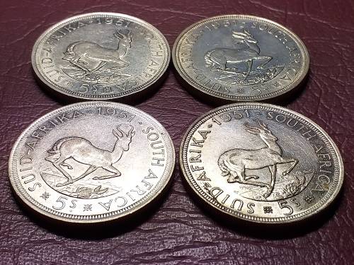 A LOT OF 4 x 1951 SA UNION 5 SHILLINGS - [Bid per coin to take all.] A LOT OF 4 x 1951 SA UNION 5 SHILLINGS - [Bid per coin to take all.] A LOT OF 4 x 1951 SA UNION 5 SHILLINGS - [Bid per coin to take all.] A LOT OF 4 x 1951 SA UNION 5 SHILLINGS - [Bid per coin to take all.]