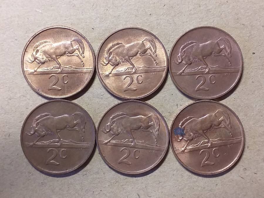 A LOT OF 6 RSA 2 CENT's [Different dates uncirculated]