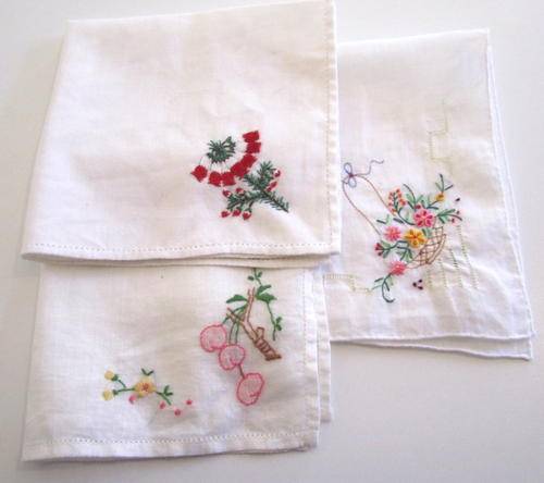A LOT OF 9 VINTAGE HANDKERCHIEFS AND A HANDKERCHIEF BAG