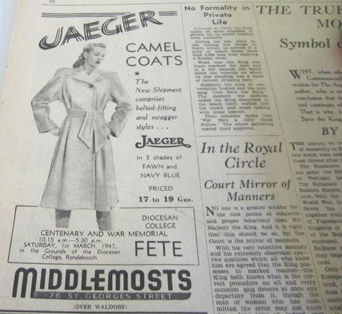 Memorabilia from the Royal visit to South Africa 1947 of King George V1 and Queen Elizabeth(Queen mother) and their daughters Princess Elizabeth and Princess Margaret.
