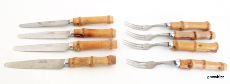 4 X fruit knives and forks with wooden handles