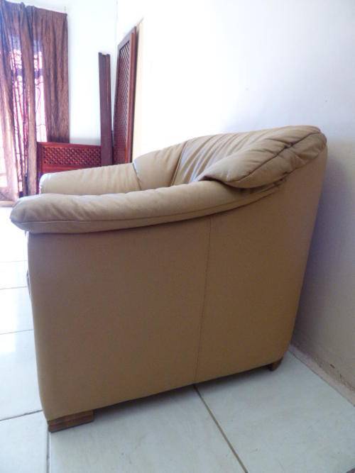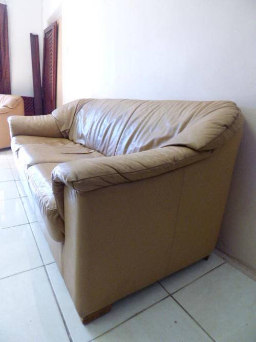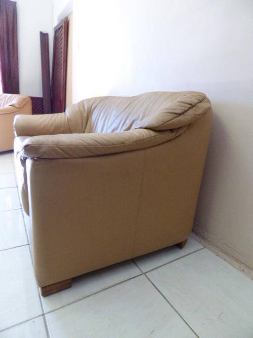 THIS GORGEOUS LEATHER LOUNGE SUITE CONSISTS OF A THREE SEATER, TWO SEATER AND ONE SEATER. THE LEATHER HAS AGE RELATED WEAR ON IT BUT THERE ARE NO TEARS OR HOLES IN IT. THIS IS A PERFECT LOUNGE SUITE FOR TV ROOMS OR INFORMAL LIVING ROOMS OR UNDERCOVER PATIOS. EASY TO WIPE DOWN AND KEEP CLEAN. THIS IS A VERY COMFORTABLE LOUNGE SUITE.