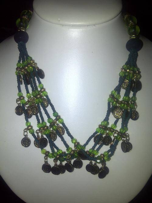 A lovely green 5 strand beaded Necklace. so cassic!! Jazz up your drab winter wardrobe!