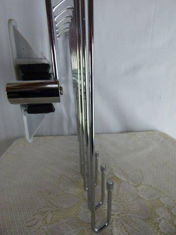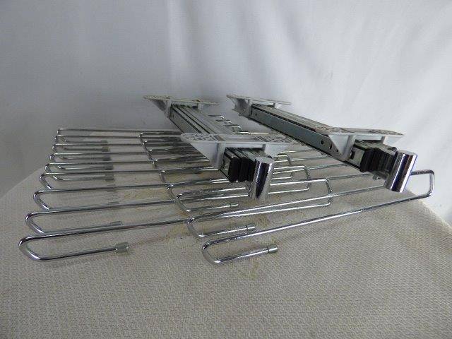 A LOVELY SPACE SAVING MULTI FUNCTION TROUSER HANGER. THIS METAL HANGER HAS SCREW IN FITTING TO SECURE IT IN YOUR WARDROBE. IT MEASURES 37cm x 28cm LONG.