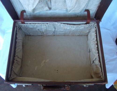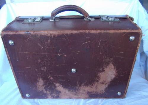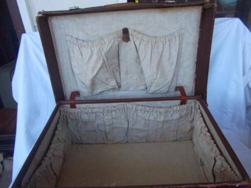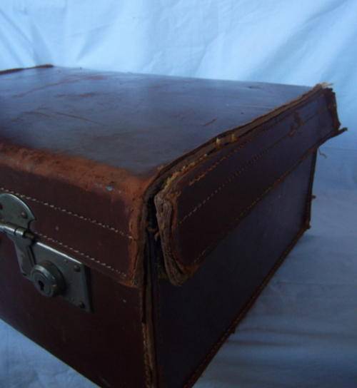 This heavy little suitcase is in a fair condition for its age. Made of thick cow hide. The handle is still holding strong, and apart from some Dubbin, the sides on the top needs attention. But the latches still work well. measures 50 x 20 cm