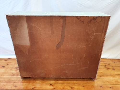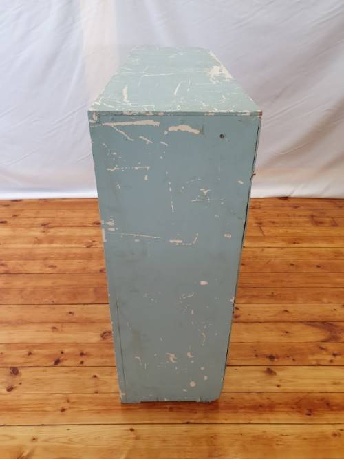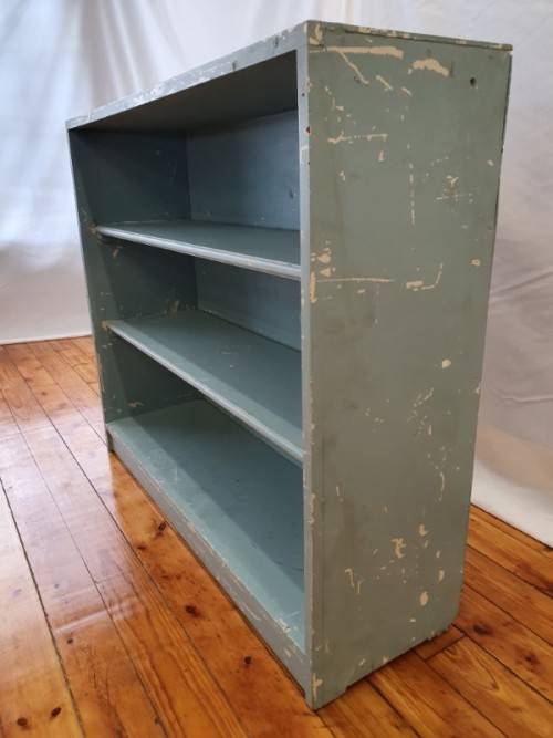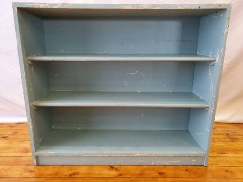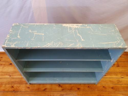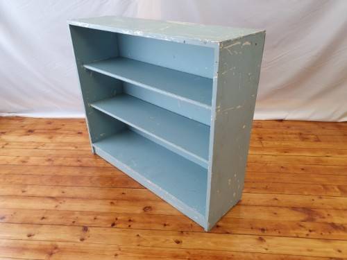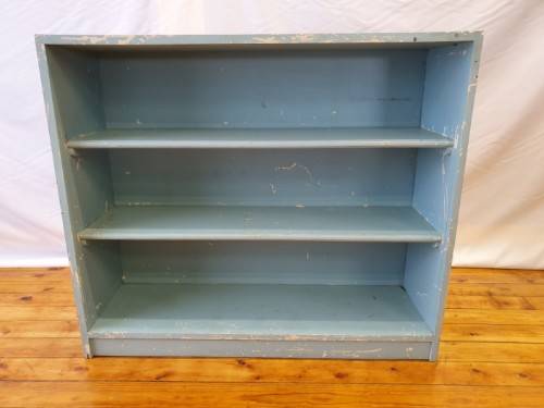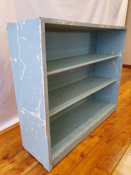 This painted blue bookcase is in fair condition and measures 32cm x 106cm x 91cm high. It can be used in a study, bedroom or office, there is some wear on this item. It is well made and sturdy. Please view the pics carefully to fully appreciate this book shelf and to confirm the condition.