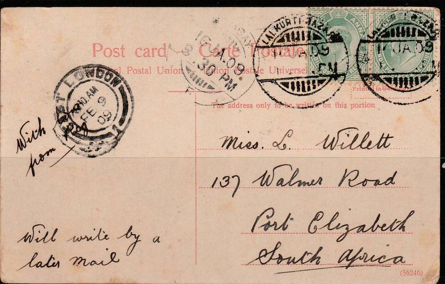 A LOVELY POST CARD PICTURE OF UNIVERSITY AND CLOCK TOWER BOMBAY MAILED TO S. A. 1909 LOOK SCAN X 2