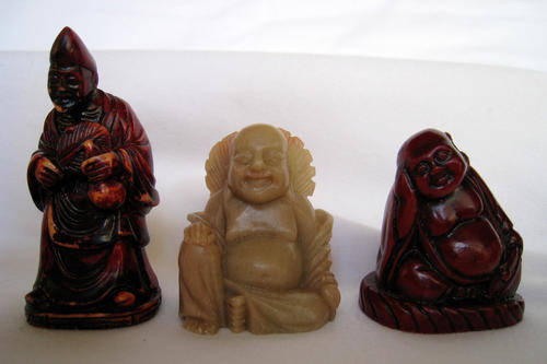 left: resin: 2.8 x 2.5 x 6cm / middle: soapstone: 3.5 x 2.6 x 4cm / right: resin: 3 x 3.7 x 4.5cm