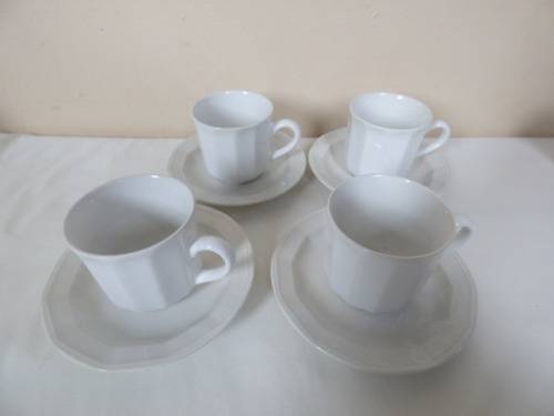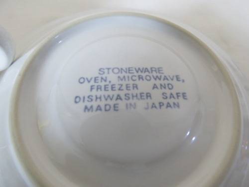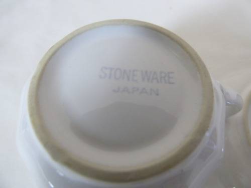 A LOVELY SET OF FOUR JAPAN STONEWARE COFFEE CUPS & SAUCERS, THESE ARE DISHWASHER AND MICROWAVE SAFE. THESE PIECES HAVE NO CHIPS OR BREAKS. THE CRISP WHITE WILL SUITE ANY TRAY OR TABLE YOU ARE PLANNING FOR LUNCH OR DINNER.