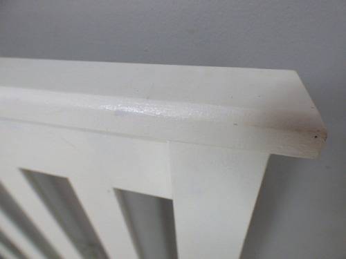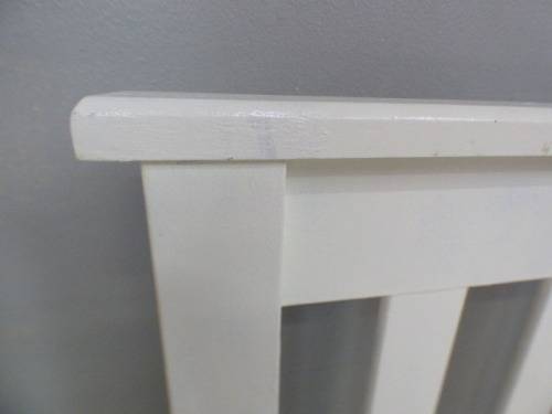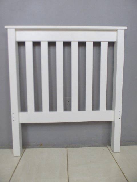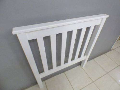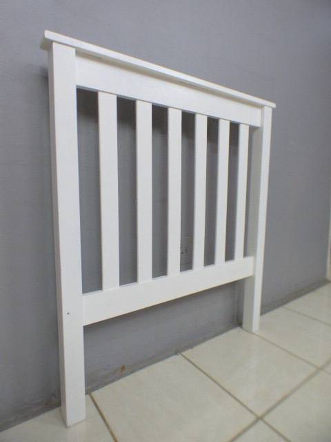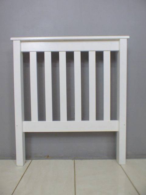 This lovely painted white wood single bed head board measures 7cm wide x 101cm long x 112cm high. There is normal wear and tear. It will look stunning in all bedrooms in the home, and will certainly suit any room in a holiday home. Please view the pics carefully to fully appreciate this painted headboard and to confirm the condition.