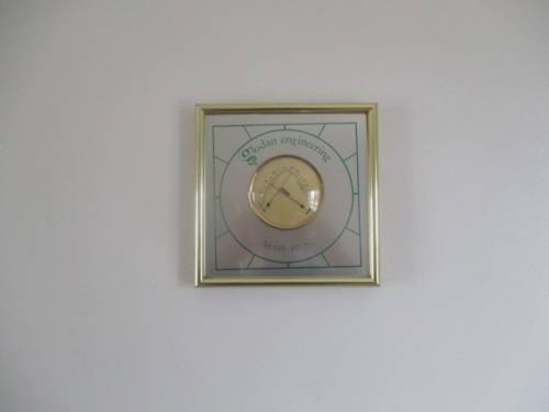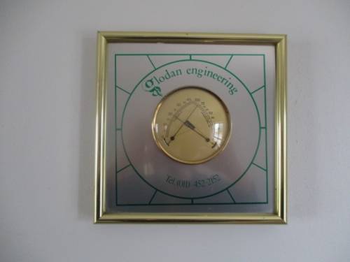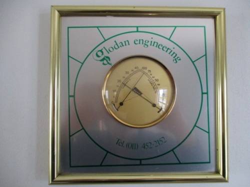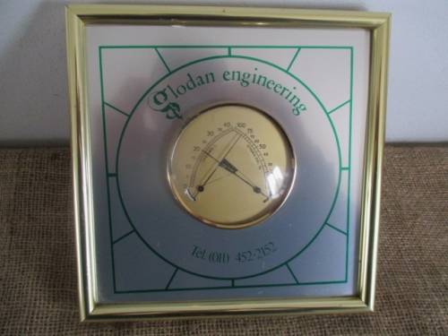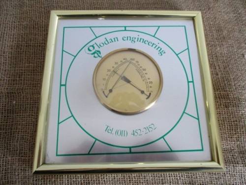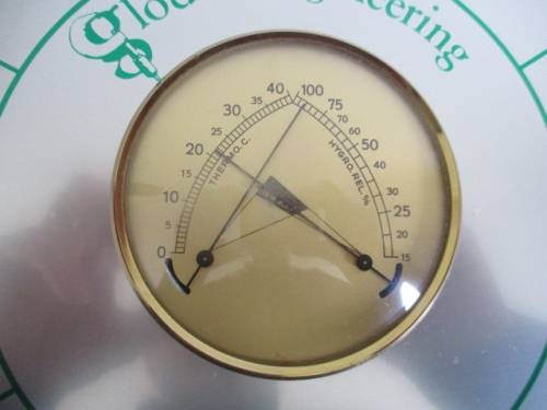 A lovely vintage framed brass Thermo.C & Hygro.Rel.% meters In good condition