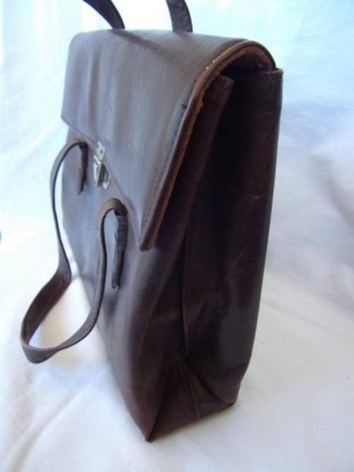 This handy leather bag has two pockets on the inside, it is good and strong, with no funny smells or stains. It already has a lovely patina but will lovely with a nice dubbin rub. It measures 28 cm x 21 cm, excluding the handles.