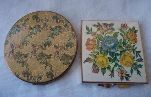 A LOVELY VOGUE COMPACT AND A HANDBAG MIRROR WITH A MAGNIFYING MIRROR AND A PLAIN MIRROR