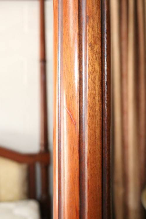 This absolutely magnificent and luxurious solid Teak four-poster canopy KING SIZE bed is an amazing find and truly looks incredible. The craftsmanship that went into making this is evident in the sheer quality and magnificence of this bed. This amazing bed measures 210cm long x 201cm wide x 220cm high to the top of the canopy. The bed features a covered canopy as well as stunning carved detailing around the posts and an upholstered headboard. The bed comes with a thick and comfortable "Rest Assured Matrix Enzo" mattress. The bed has some minor wear and tear and a few scuffs here and there (including staple marks on the inner edges of the canopy - see pics) but it really does not detract from the bed at all - it is truly stunning. This would be an amazing addition to any large main bedroom. Please view the pictures carefully to fully appreciate this truly amazing King Size bed and to confirm the condition.