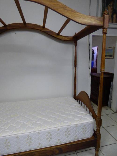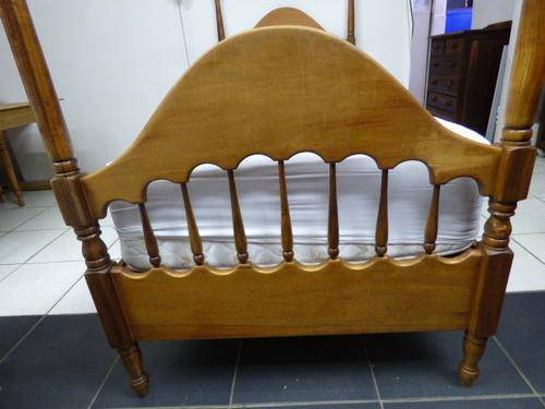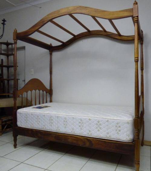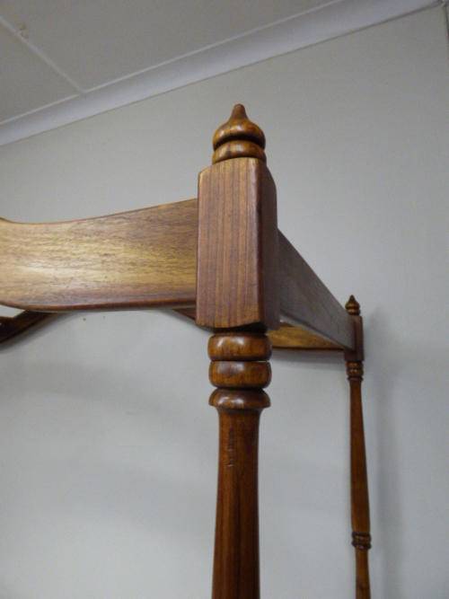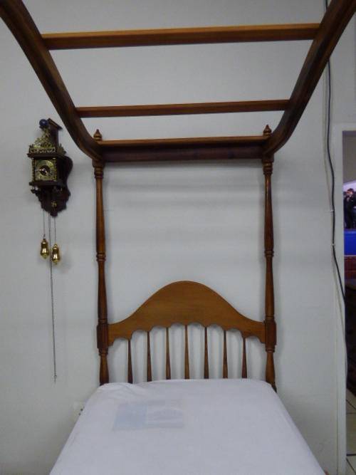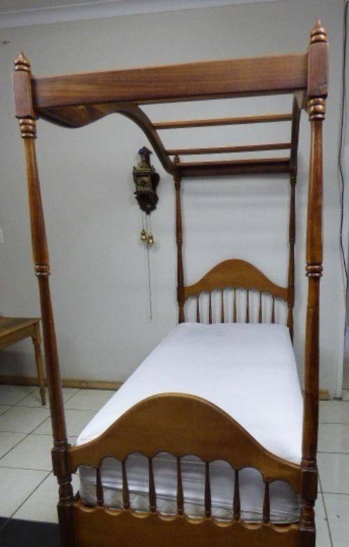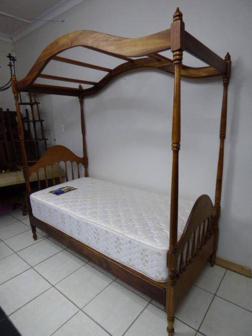 A STUNNING, GORGEOUS SOLID BLACKWOOD FOUR POSTER CANOPY SINGLE BED, THIS BED WILL LOOK STUNNING IN A LITTLE GIRL'S ROOM OR IN A GUEST ROOM. THE BED IS STURDY AND IN STUNNING CONDITION. THE DRAPING IS INCLUDED BUT NOT THE LINEN ON THE BED OR THE MATTRESS. THIS MAGNIFICENT BED MEASURES APPROXIMATELY 97cm x 202cm x 215cm HIGH. BEAUTIFUL.